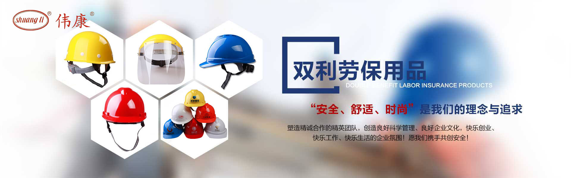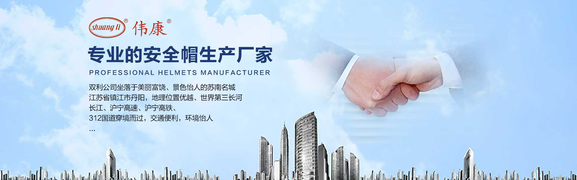 專業(yè)的安全帽生產(chǎn)廠家-鎮(zhèn)江市雙利勞保用品有限公司。雙利公司坐落于美麗富饒、景色怡人的蘇南名城——江蘇省鎮(zhèn)江市丹陽,地理位置優(yōu)越、世界第三長河——長江、滬寧高速、滬寧高鐵、312國道穿境而過,交通便利,環(huán)境怡人。鎮(zhèn)江市雙利勞保用品有限公司是鎮(zhèn)江市第一家創(chuàng)辦的專業(yè)生產(chǎn)安全帽的生產(chǎn)商,并申請擁有自己的品牌:shuangli牌和偉康牌,立足致力于安全帽研究,從原料入手研發(fā)出韌性更強、抗沖力更高的特點。公司根據(jù)實際運行需要建立高效、務(wù)實、有序的組織機構(gòu),實現(xiàn)現(xiàn)代化公司管理。同時公司具備專業(yè)完善的生產(chǎn)設(shè)備和成熟的安全帽生產(chǎn)工藝及先進的檢測儀器,為產(chǎn)品的質(zhì)量奠定了堅實的基礎(chǔ),各項技術(shù)指標均達到國家《GB2811-2019》《安全帽》標準。產(chǎn)品廣泛適用于建筑、林業(yè)、石油、石化、造船、港口、冶金等行業(yè)。 “安全、舒適、時尚”是我們的理念與追求,塑造精誠合作的精英團隊,創(chuàng)造科學管理、良好的企業(yè)文化,快樂創(chuàng)業(yè)、快樂工作、快樂生活的企業(yè)氛圍!愿我們攜手共創(chuàng)安全!